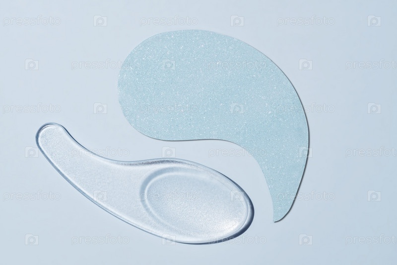 Синие коллагеновые гидрогелевые патчи для глаз на синем фоне. Концепция красоты, косметика для ухода за кожей вокруг глаз, лифтинг, салон красоты, удаление морщин
