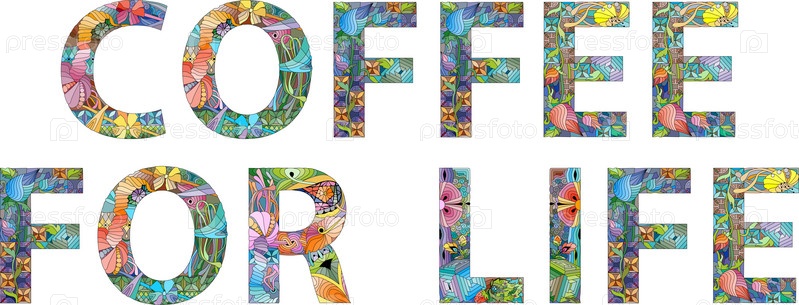 Ручная роспись художественного дизайна. Нарисованные от руки иллюстрации слова Кофе на всю жизнь для футболки и других украшений