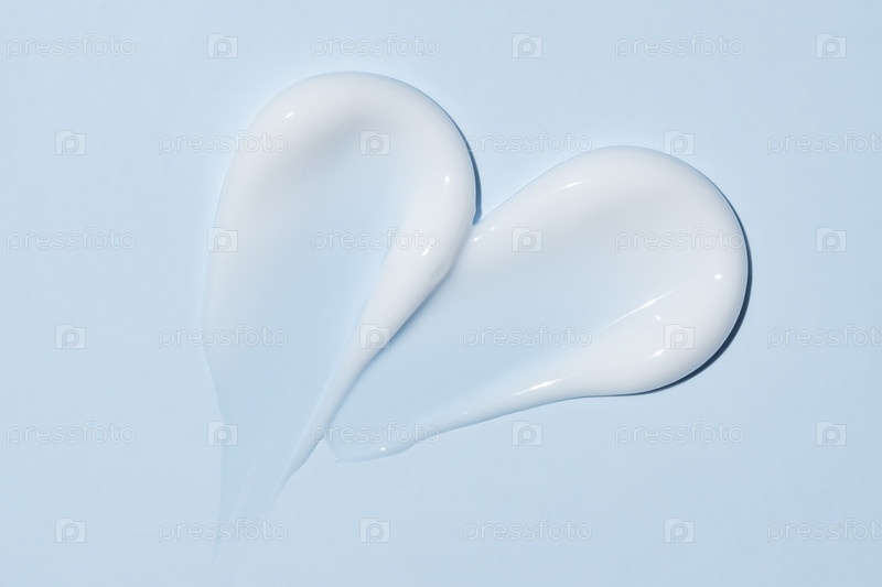 Скрабовые мазки изолированы на синем фоне. Образец мазка белого отшелушивающего крема. Пилинг-скраб для лица или тела. Образец средства по уходу за кожей. витрина продукта