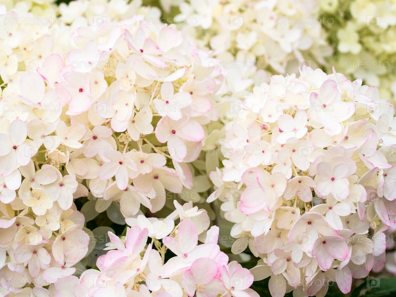 Много маленьких цветков белой гортензии