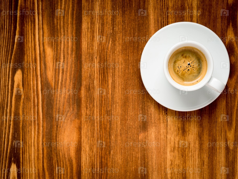 Белая чашка пенистого кофе на коричневом темном деревянном фоне