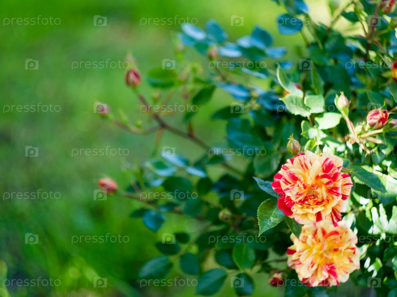 Цветочный фон с красным и оранжевым цветком розы с местом для текста. Фон с эффектом боке