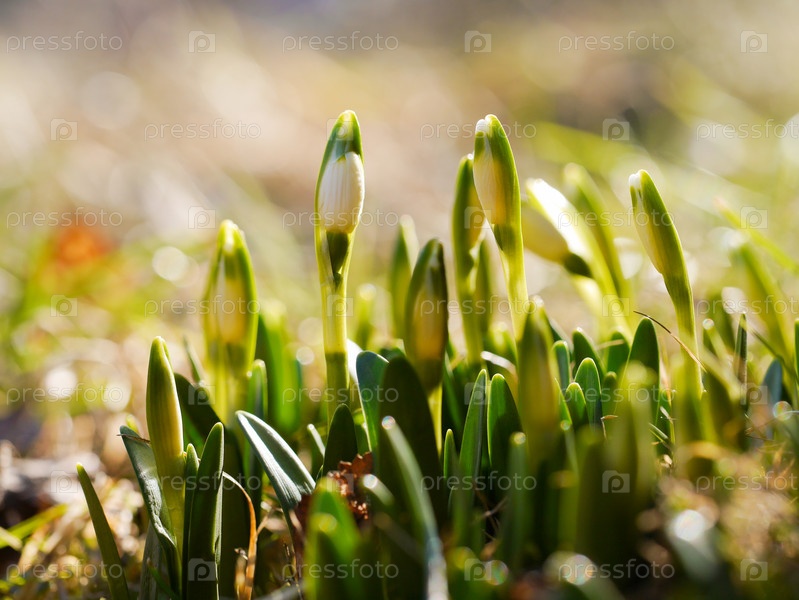 Подснежник с цветением на солнечном свете, возрождение весеннего цветка с бутоном, пробуждение природы