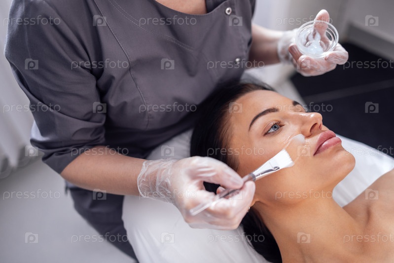 Красивая брюнетка делает косметическую процедуру