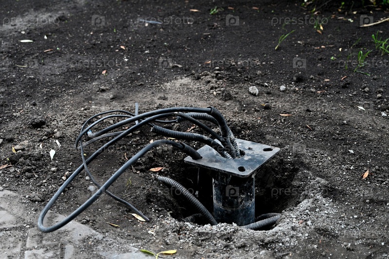 Новый электрический кабель в земле