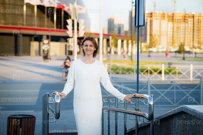 Женщина переходит дорогу по пешеходному переходу