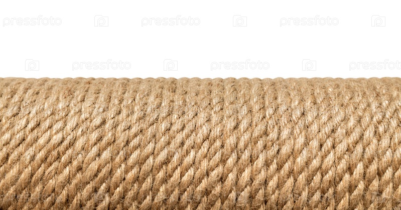 Ютовая веревка в мотке крупным планом на белом изоляционном фоне. Естественные органические нити. Экологически чистый материал для творчества. Изготовлен из растения Corchorus capsularis