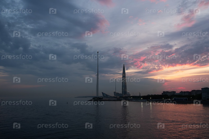 Санкт-Петербург, Россия, 25.05.2024. Вид на небоскреб Лахта Центра на закате