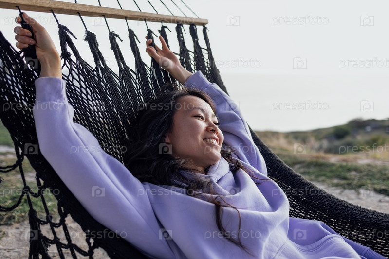 Красивая кореянка в повседневной одежде наслаждается отдыхом на свежем воздухе