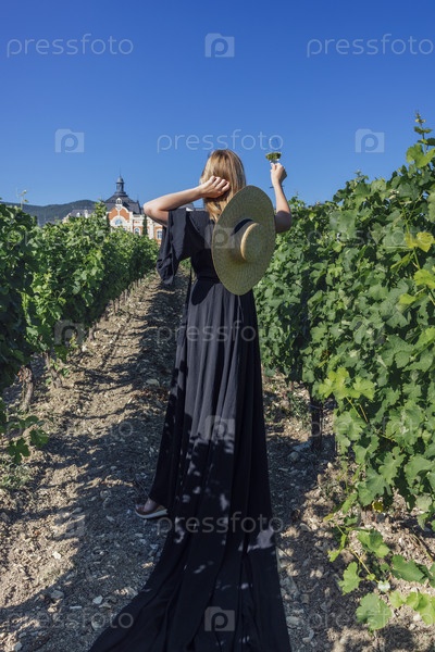 Молодая самка гуляет по винограднику. Вид сзади