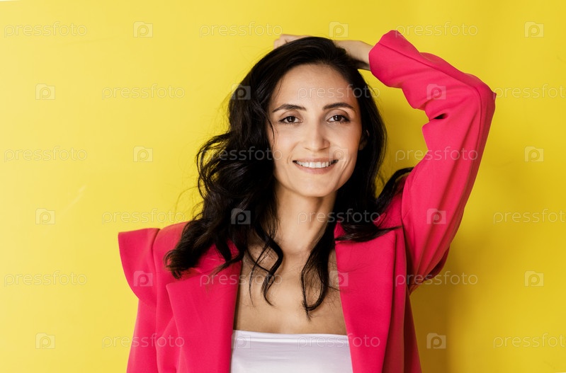 Портрет крупным планом красивой молодой женщины в розовой куртке