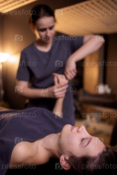 Крупный план молодых женских рук, получающих нежный массаж рук