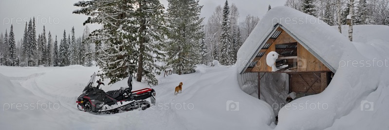 Россия. Кузнецкий Алатау. Зимний вид на дачный поселок Борисовка среди заснеженной непроходимой тайги на берегу реки Томь