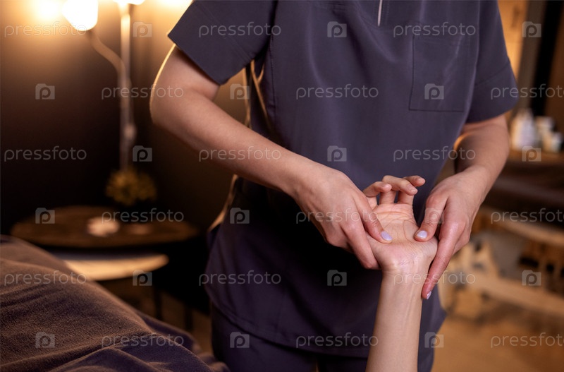 Крупный план молодых женских рук, получающих нежный массаж рук