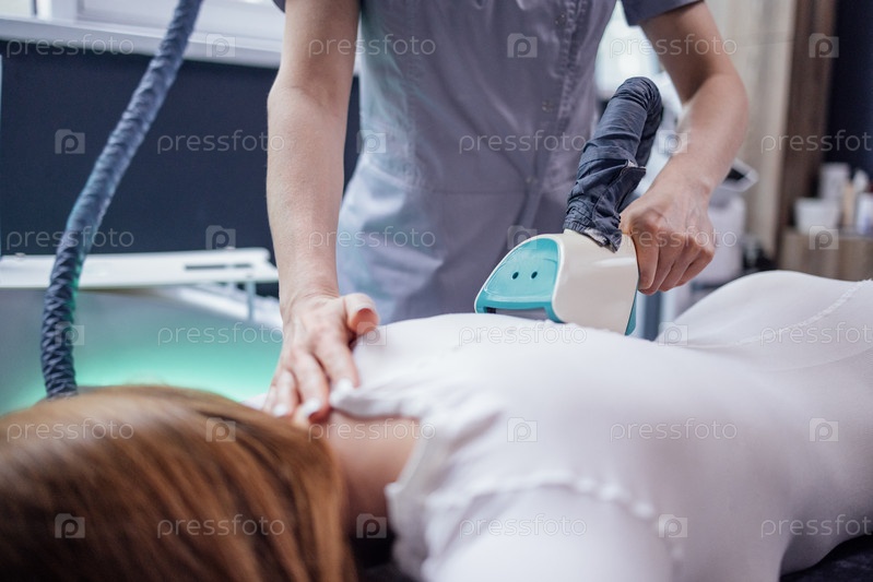 Косметолог использует аппарат для похудения LPG на теле клиента