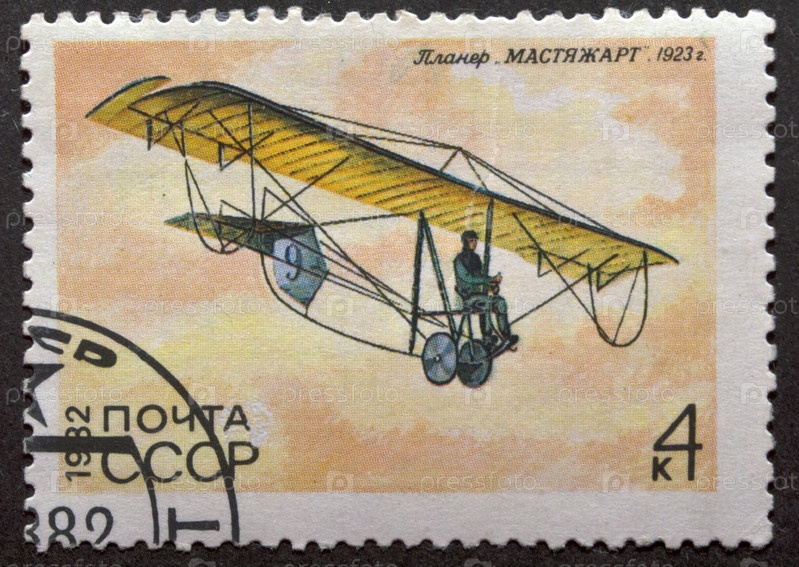 Почтовая марка с гашением СССР 1982 год. Планер "Мастяжарт" 1923 года