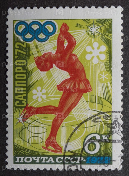 Почтовая марка с гашением СССР 1972 год. 11 Олимпийские игры (Саппоро, Япония). Фигурное катание