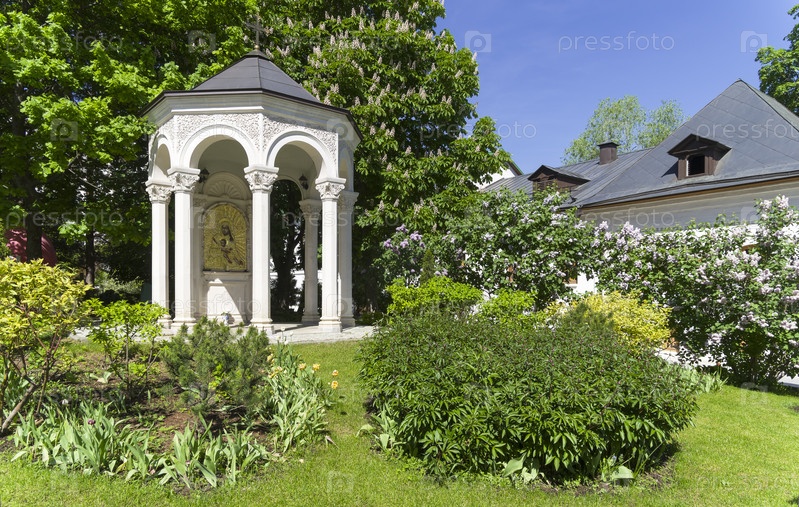 Часовня иконы Божией Матери Милостивая в Зачатьевском монастыре, Москва. Солнечный день в конце мая