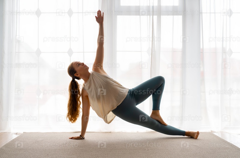 Женщина занимается йогой