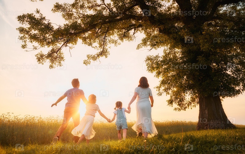 Счастливая семья на летней прогулке