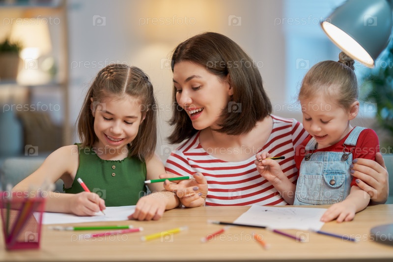 Мать и дочери рисуются вместе