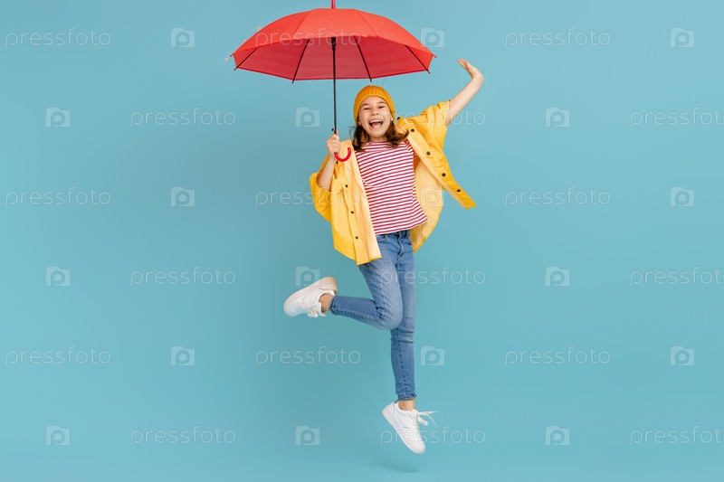 Ребенок с зонтиком на цветном фоне