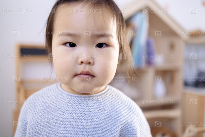 Забавная маленькая азиатка играет в своей комнате