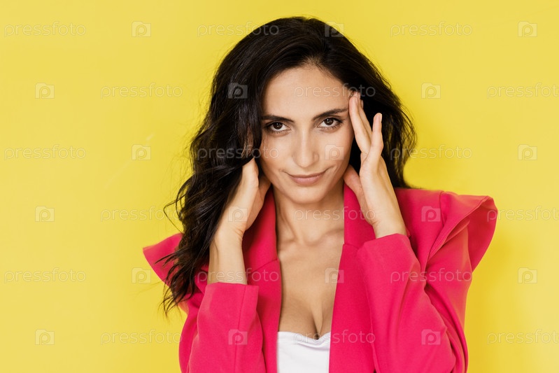 Портрет крупным планом красивой молодой женщины в розовой куртке