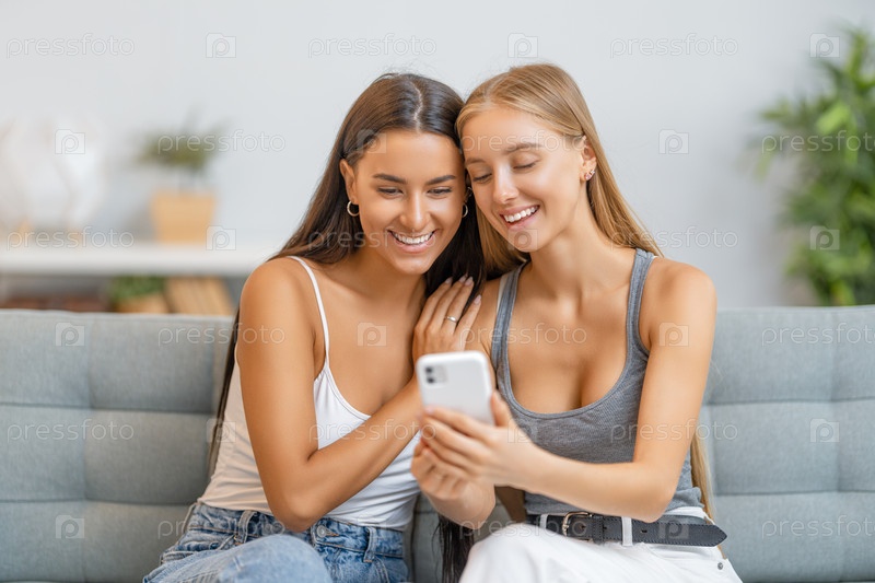 Молодые женщины пользуются телефоном