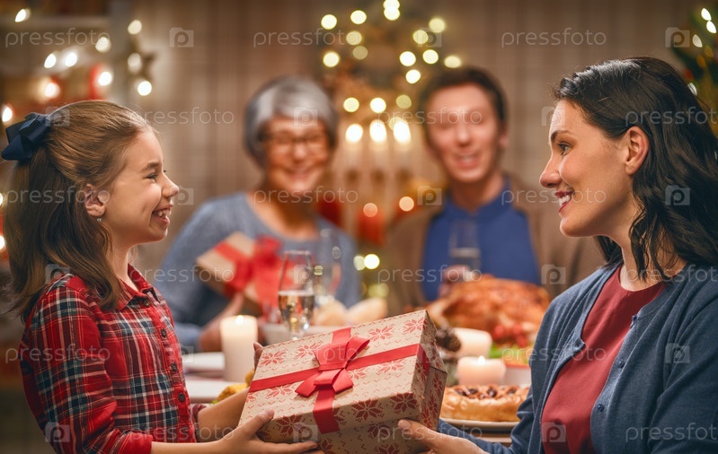 Семья празднует Рождество