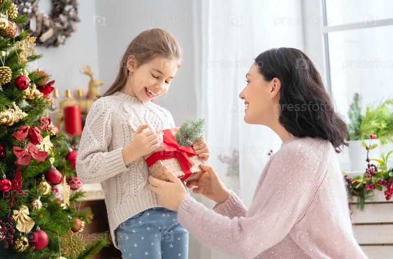 Мама и дочь обмениваются подарками