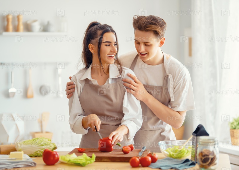 Влюбленная пара готовит настоящую еду
