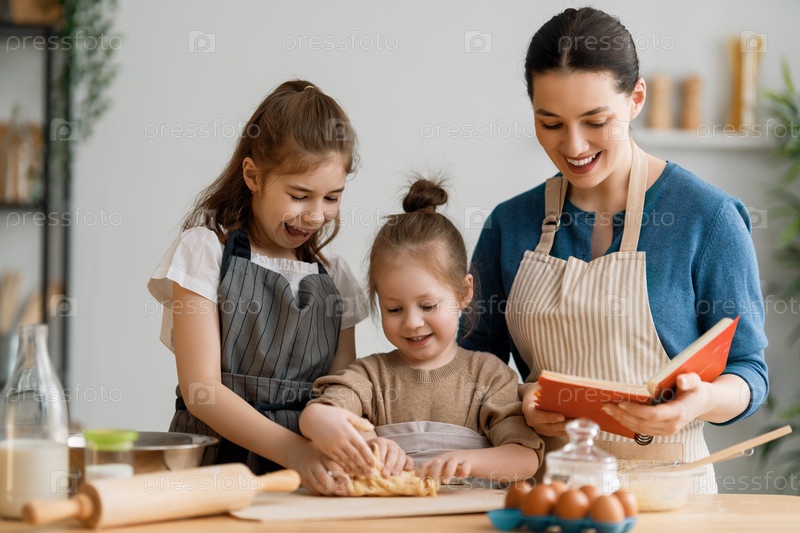 Семья вместе готовит выпечку