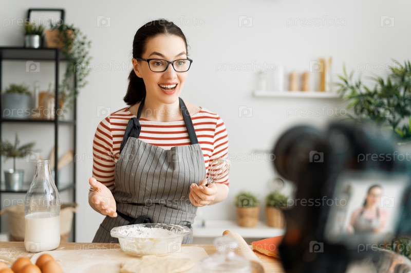 Женщина записывает видеоблог о кулинарии