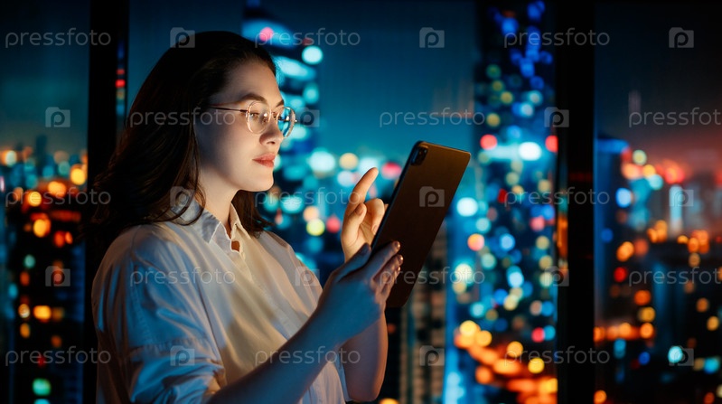 Деловая женщина работает на планшетном компьютере