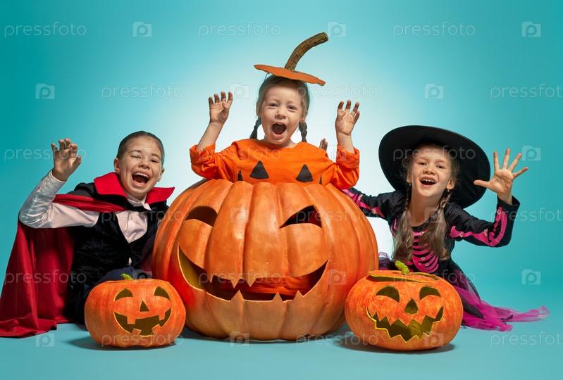 Ведьма, Дракула и тыква на бирюзовом фоне