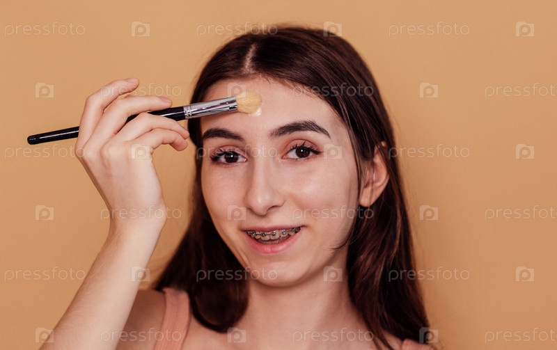 Девушка-подросток наносит на лицо увлажняющую маску или крем