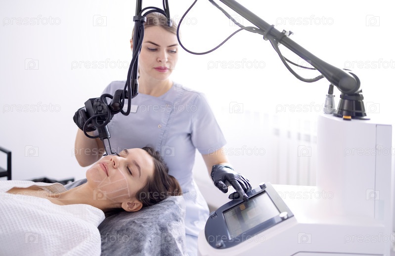 Молодая женщина проходит процедуру лазерной шлифовки и пилинга