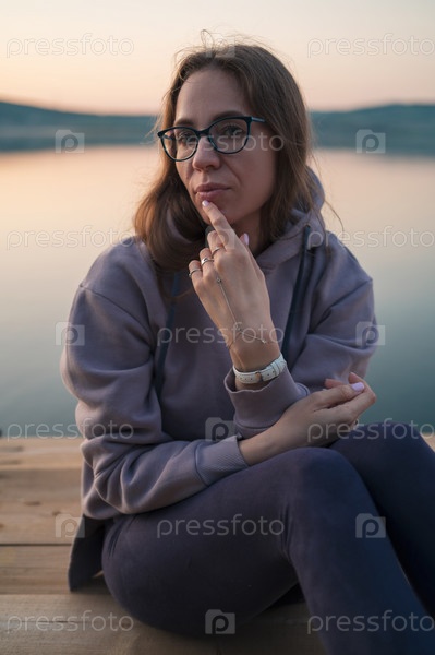Женщина, сидящая на пирсе
