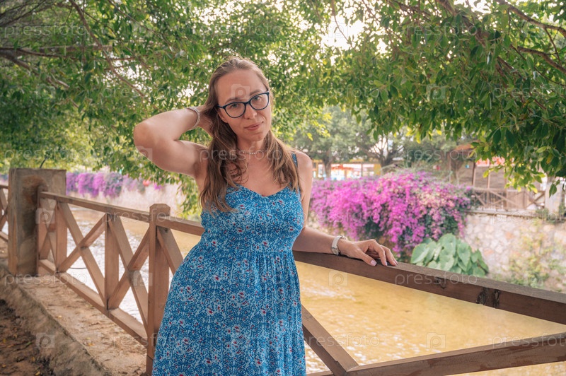 Женщина в городе Алания, Турция. Концепция путешествия или отпуска