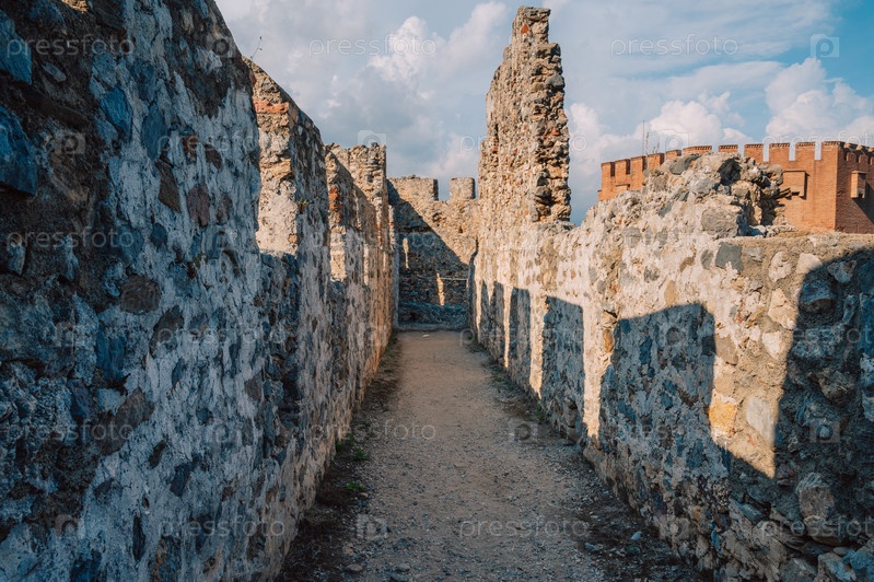 Руины крепости исторической Красной башни - Кызыл Куле, в замке Аланьи.Красная башня является символом города Алания и известным туристическим местом Турции (Turkiye)