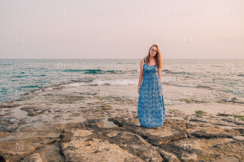 Женщина сидит на пляже и смотрит на море в городе Алания, Турция. Концепция путешествия или отпуска