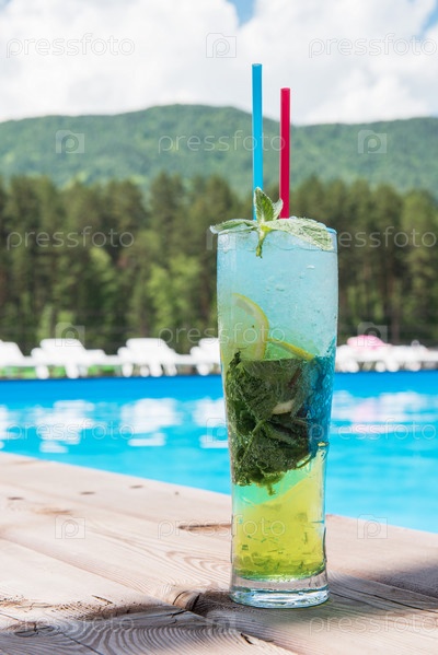 Коктейль Мохито с лаймом и мятой в стакане хайболл