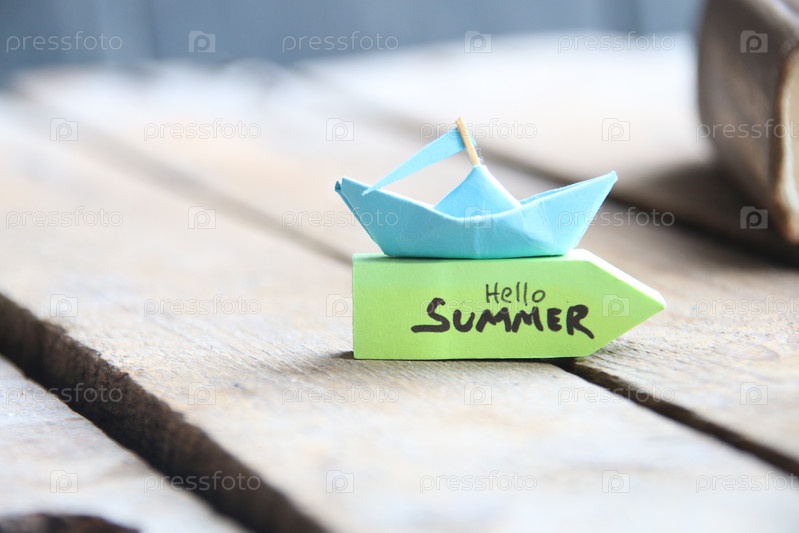 Бумажный кораблик и бирка «Здравствуйте, лето»