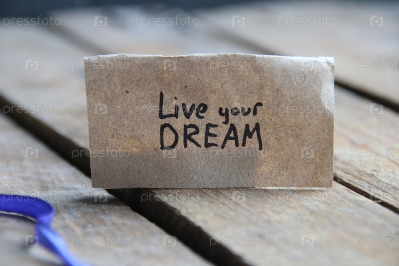 Живи своей мечтой. Надпись на бирке. Винтажный стиль. Мотивационные цитаты