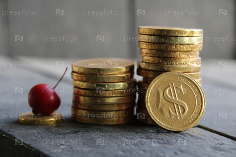 Успех в бизнесе. Поднятие диаграммы с деньгами золотых монет