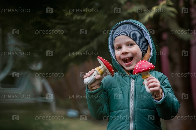 Ребенок и мухомор. Мальчик с мухомором. Опасный ядовитый гриб в руках ребенка. Отравление грибами, микродозирование, употребление лекарственных трав