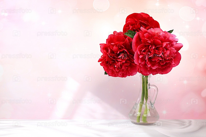 Абстрактная цветочная композиция, красивые бордовые пионы на элегантном фоне в вазе, весенний и летний баннер. Креативный современный букет. Открытка ко Дню матери, с днем рождения, свадьбой,