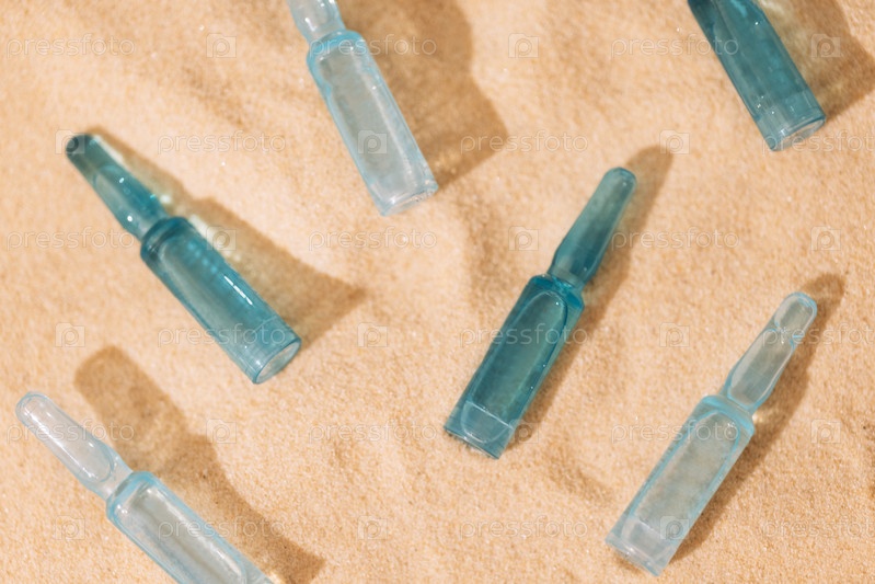 Крупный план синих ампул с интенсивным увлажняющим концентратом с гиалуроновой кислотой