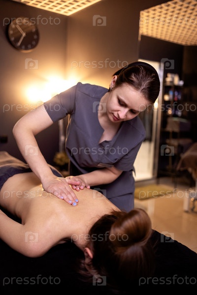 Молодая кавказская женщина получает массаж спины в спа-салоне